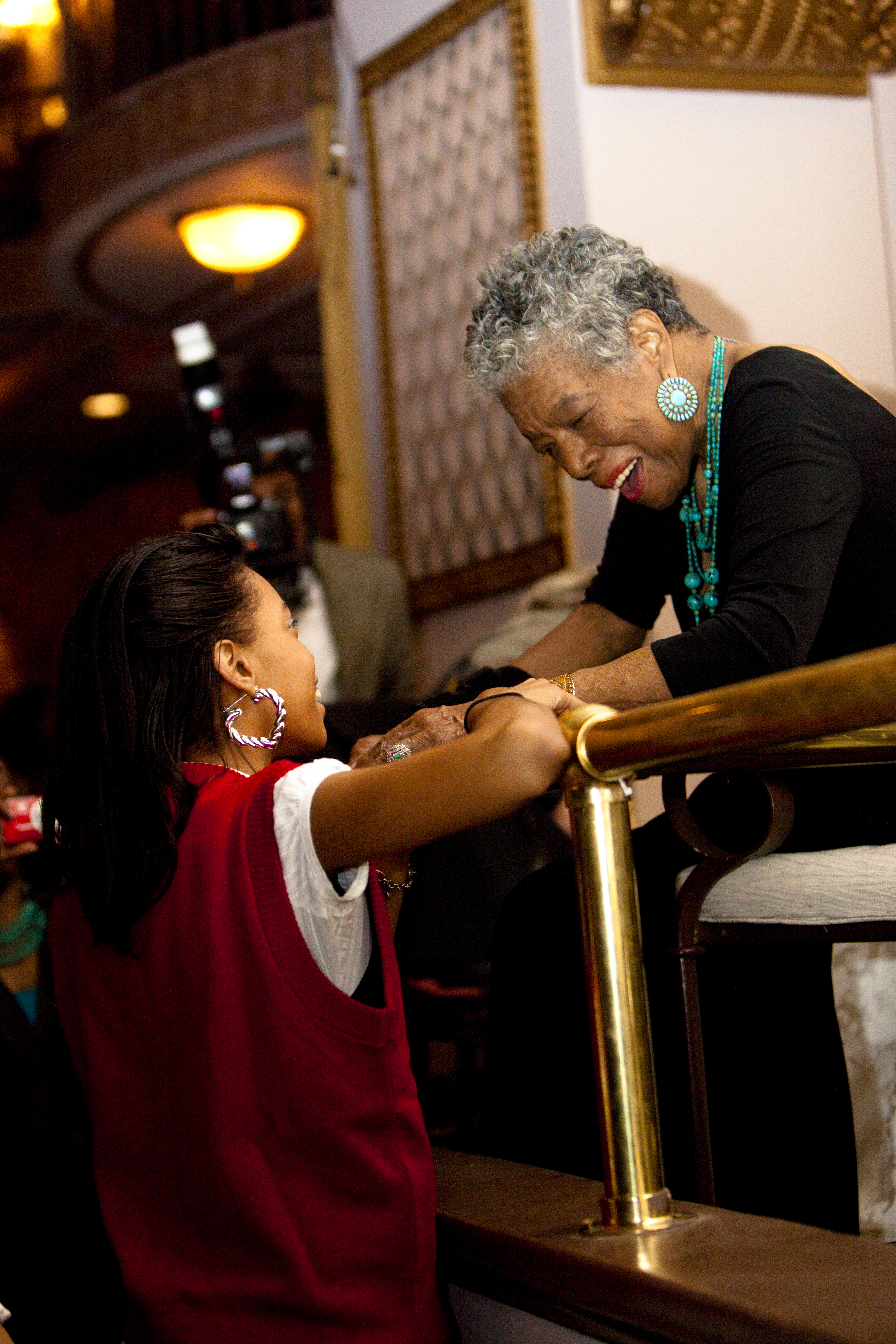 A student at the time entered an essay contest to rename to the school. With full support from Dr. Maya Angelou, the school was officially named The Maya Angelou Public Charter School. Dr. Angelou visited the school every year for annual fundraisers. Pictured to the right is Dr. Angelou at an event.